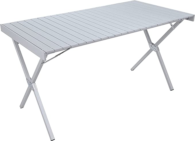While the title says dining table, this also makes an excellent prep table or larger area for your stove with plenty of space cook. It’s aluminum which means it’s lightweight and also easy to clean. It folds up nicely and is easy to store. My only complaint is that the legs aren’t adjustable when on unlevel ground, but the same leveling blocks used for the trailer work for this table. Random rocks and wood can work, too.