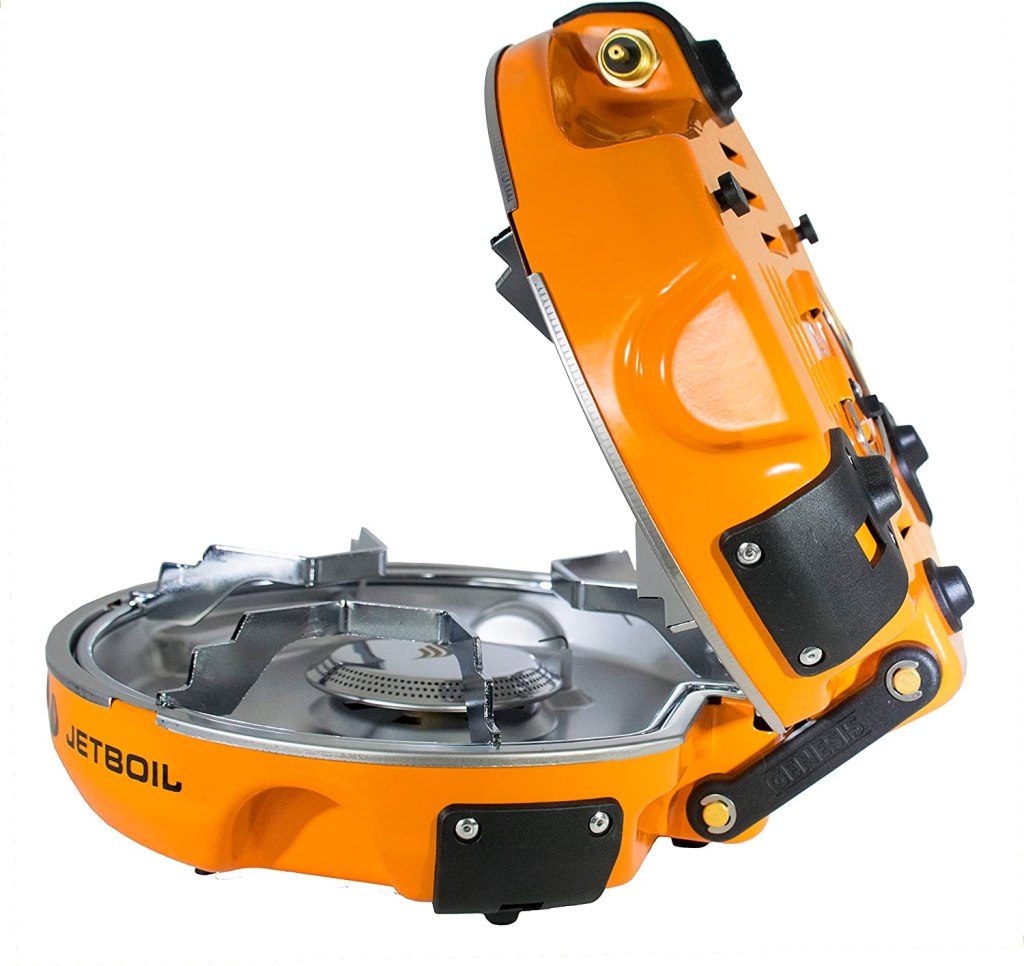 This goes everywhere whether in the trailer or car camping. It is folds up small, but can easily handle food for the whole family. I runs off of a bulk propane tank or the smaller 1lb propane bottles. It will easily simmer whatever you are cooking and the ignitor is easy to push and very reliable.